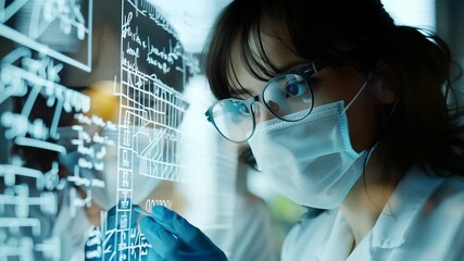 Scientist Analyzing Transparent Digital Code In Lab Videos