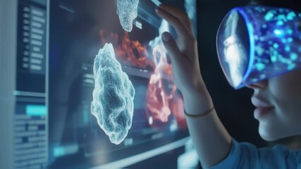 Scientist Analyzing Virtual Virus Data Hologram Videos