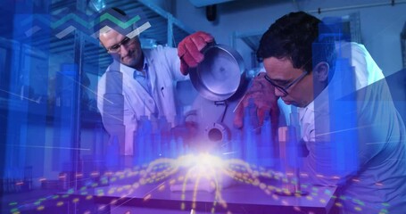 Scientist Conducting Experiment With Data Overlays In Laboratory Videos