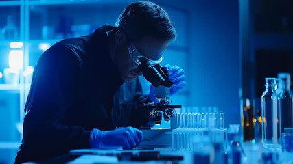 Scientist Examining Sample Under Microscope In Laboratory Videos