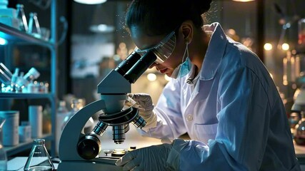 Scientist Examining Sample Under Microscope In Laboratory Videos
