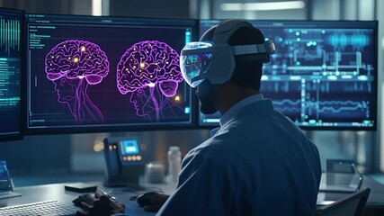 Scientist In Lab Coat With Digital Data Visualizations For Research Analysis Videos