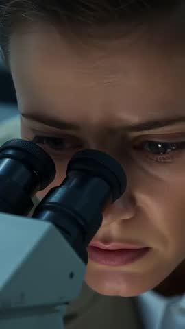 Scientist Observing Microscope Surrounded By Animated Molecules Videos