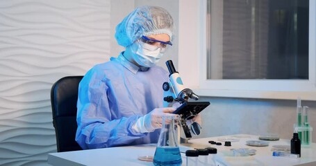 Scientist Observing Through Microscope In Chemistry Lab Videos