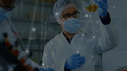 Scientists Analyzing Data In Laboratory With Digital Overlay Videos