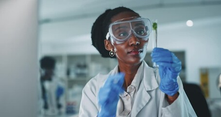 Scientists Analyzing Green Liquid Sample In Lab Videos