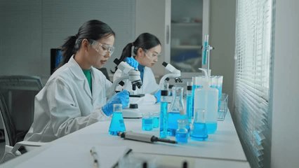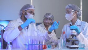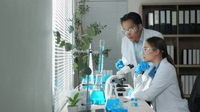 Scientists Collaborating In A Laboratory Setting With Microscope Videos