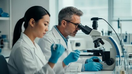 Scientists Collaborating In A Laboratory Setting With Microscope Videos