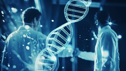 Scientists Collaborating In Lab With Technology Overlay Videos