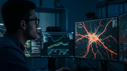 Scientists Working With Digital Network Visuals Videos
