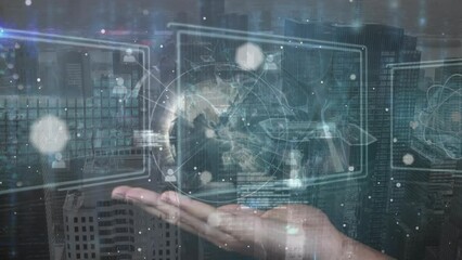 Screen Displaying Data Processing Over Modern Skyscraper Videos