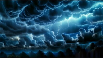 Seamless Cloud With Lightning Pattern On Blue Background Videos