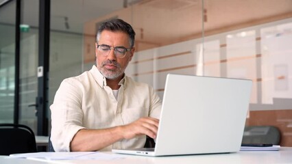 Senior Businessman Analyzing Financial Data In Modern Office Videos