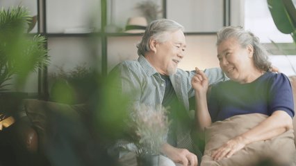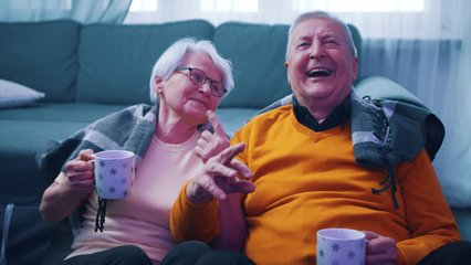 Senior Couple Embracing On Sofa With Tranquil Expression Videos