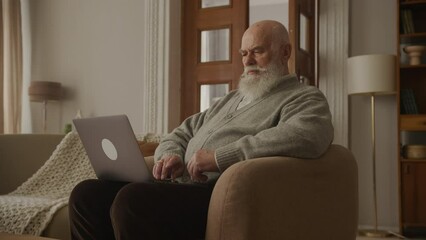 Senior Man Using Laptop On Comfortable Armchair At Home Videos