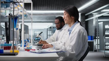 Senior Scientist Analyzing Data On Computer In Laboratory Videos