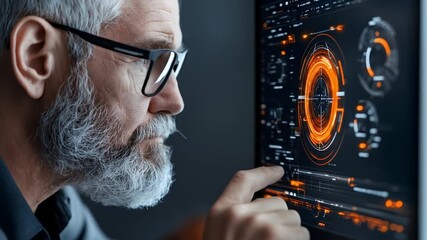 Senior Scientist Analyzing Data With Digital Code Interface Videos