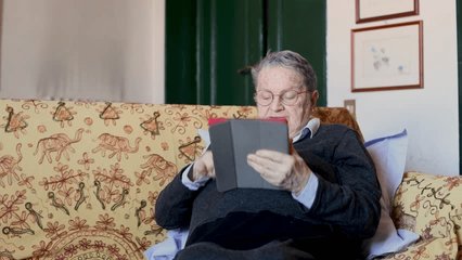 Senior Woman Using Tablet With Data Overlay Technology Videos