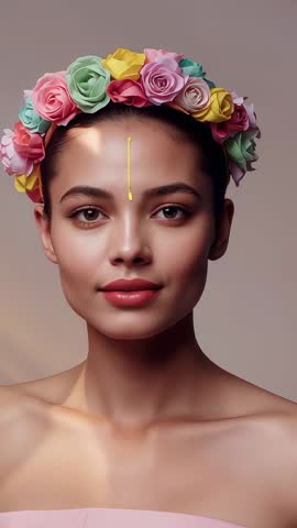 Serene Model With Floral Crown Under Soft Rainbow Light Videos