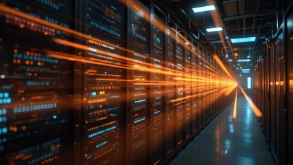 Server Room With Digital Data Overlay Videos