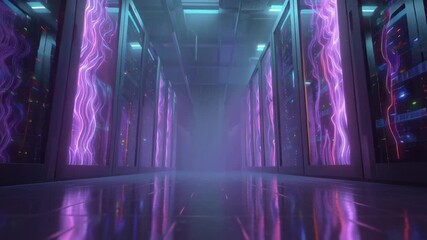 Server Room With Dynamic Data Visualization Overlay Videos