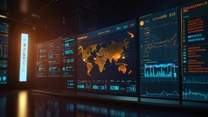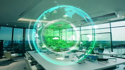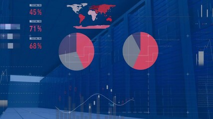 Server Room With Global Network Visualization Videos