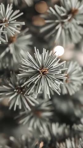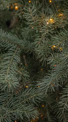 Shifting Focus On Evergreen Needles With Warm Bokeh Lights For Holiday Close Up Videos
