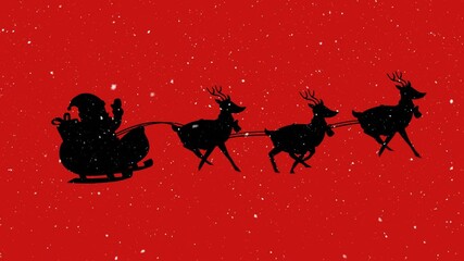Silhouette Of Santas Sleigh On Festive Red Background Videos