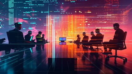 Silhouetted Professionals Discussing Business Data Analytics Videos