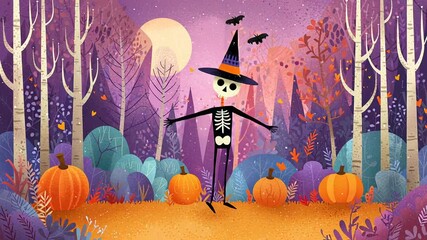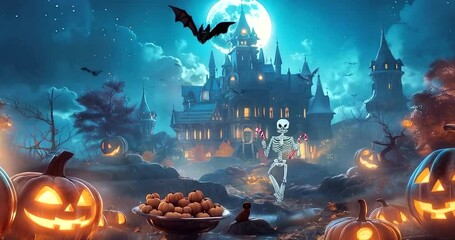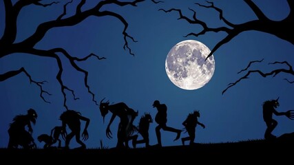 Skeleton Animation Against Eerie Full Moon Scene Videos