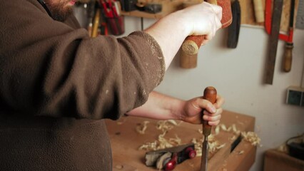 Skilled Carpenter Using Chisel In Workshop Crafting Wood Videos