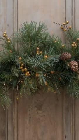 Slow Drift Revealing Gold Garland Closeup With Sparkling Leaves And Warm Led Bokeh Videos