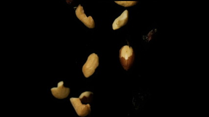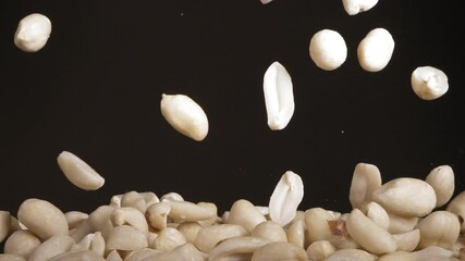 Slow Motion Peanuts Falling Against Dark Background Videos