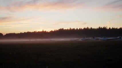 Small Propeller Airplane Parked During Sunrise At Airfield Videos