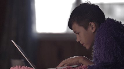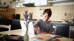 Smiling Boy Using Laptop In Bright Kitchen Videos