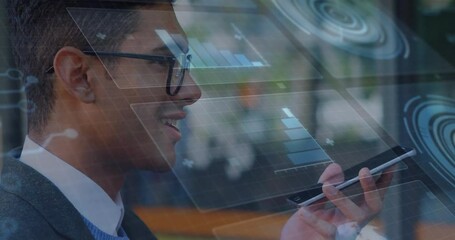 Smiling Businessman With Digital Interface Overlay Videos