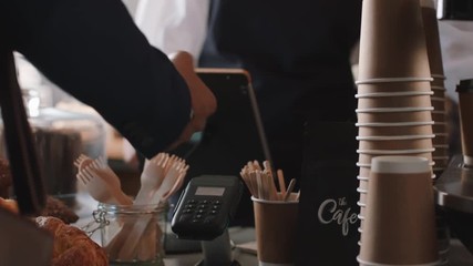 Smiling Customer Makes Digital Payment With Smartwatch In Coffee Shop Videos