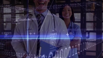Smiling Doctor With Futuristic Medical Data Display In Hallway Videos