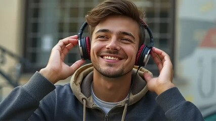 Smiling Man Enjoying Music With Headphones Videos