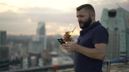 Smiling Man Relaxing With Smartphone And Beer On Rooftop Terrace Videos