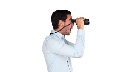 Smiling Man Using Binoculars Against White Background Videos