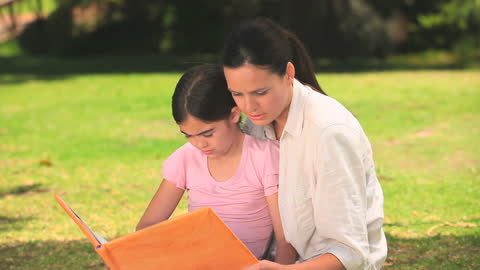 Smiling Mother Reading Book With Daughter On Park Bench Videos