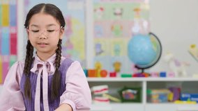 Smiling Schoolgirl In Classroom Engaging In Learning Videos
