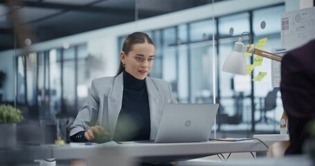 Smiling Woman Analyzing Financial Data On Laptop Videos