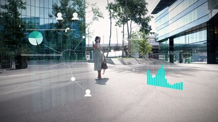 Smiling Woman Business Call With Digital Graph Overlay Videos
