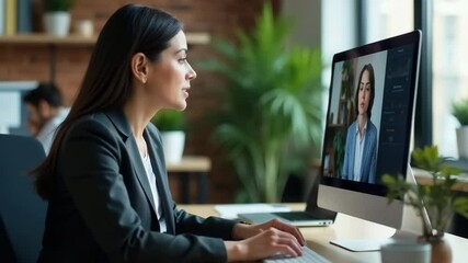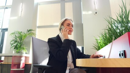 Smiling Woman Engaged In Phone Conversation During Work Videos