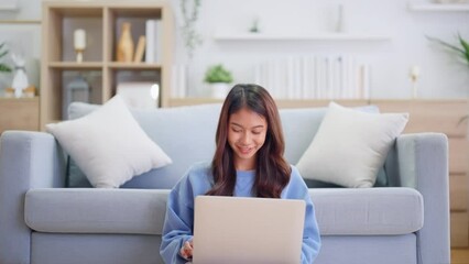 Smiling Woman Using Phone On Floor By Sofa Videos