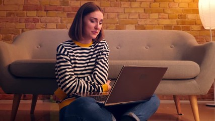 Smiling Woman Using Phone On Floor By Sofa Videos