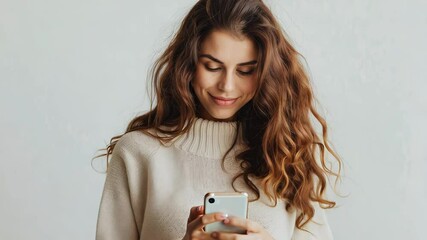 Smiling Woman Using Tablet Technology Against White Background Videos