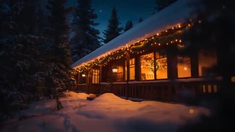 snowy cabin